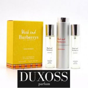 Burberry Weekend for Women женский 3х20ml – набор ароматов, которые принадлежат семейству «цветочные». Парфюмы дарят ощущение тепла и счастья. В их ароматной композиции переплетаются аккорды сладкого мандарина, сочного персика, белого кедра, соблазнительного мускуса, корня фиалки и нектарина. Удобный и компактный набор рекомендуется приобрести для себя или в качестве подарка!