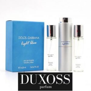 Набор парфюма Dolce & Gabbana Light Blue Pour Femme женский 3х20ml – это неповторимая чувственность и лёгкость. Он станет лучшим подарком для свободолюбивых женщин, которые любят путешествовать и наслаждаться жизнью. Мини-парфюм с цветочной композицией раскрывается аккордами колокольчика и зелёного яблока. В «сердце» букета переплетаются ноты белой розы, бамбука и жасмина. В базе слышны оттенки амбры, мускуса и кедра.