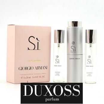 Набор парфюма Giorgio Armani Si женский 3х20ml идеально подходит для девушек любого возраста. Аромат наделяет свою обладательницу шармом и грациозностью. Цветочно-древесная композиция раскрывается аккордами листьев чёрной смородины. Средними нотами выступают шикарная роза и фрезия. Глубокий и притягательный шлейф соткан оттенками амбры, пачули и ванили. Мини-парфюмы выпускаются в компактных флакончиках, которые удобно носить с собой везде!