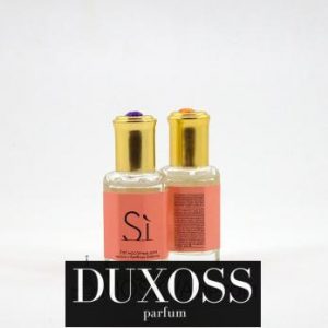 Масляные духи Giorgio Armani Si с неповторимым ароматом созданы для безупречных женщин. Название аромата переводится, как «Да». Это означает, что его обладательница готова сказать «Да» всем радостям этого мира. На вершине пирамиды парфюмерной композиции расположилась чёрная смородина. В «сердце» букета главенствуют ноты белой фрезии и майской розы. Базовые аккорды сотканы переплетением пачули и амброксана, ванили и древесины.