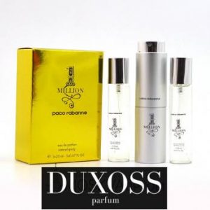 Набор парфюма Paco Rabanne 1 Million мужской 3х20ml адресован активным представителям сильного пола, которые добиваются поставленных целей. Аромат характеризуется как дерзкий, элегантный и притягательный. Древесно-пряная композиция раскрывается аккордами мандарина, грейпфрута, апельсина и освежающей мяты. К ним присоединяются сердечные ноты: лимонник и роза, приправленными специями. В базе слышны оттенки кожи, белого дерева, амбры и пачули.