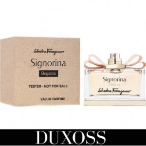 Salvatore Ferragamo Signorina Eleganza – это композиция из нот грейпфрута и груши в окружении оттенков золотистого османтуса и миндальной пудры, листьев пачули и белой кожи.