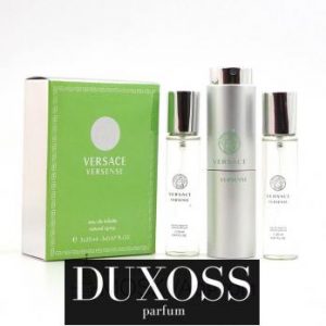 Versace Versense женский 3х20ml- набор мини парфюма, аромат которого покоряет своей чувственностью, чистотой и свежестью. Он ассоциируется с брызгами солёной воды, запахами цветов и свежим ветром. Цветочно-древесная композиция раскрывается нотами бергамота и зелёного мандарина. В самом «сердце» букета расположились аккорды жасмина, кардамона и нарцисса. Стойкий шлейф соткан оттенками сандала, кедра и мускуса.